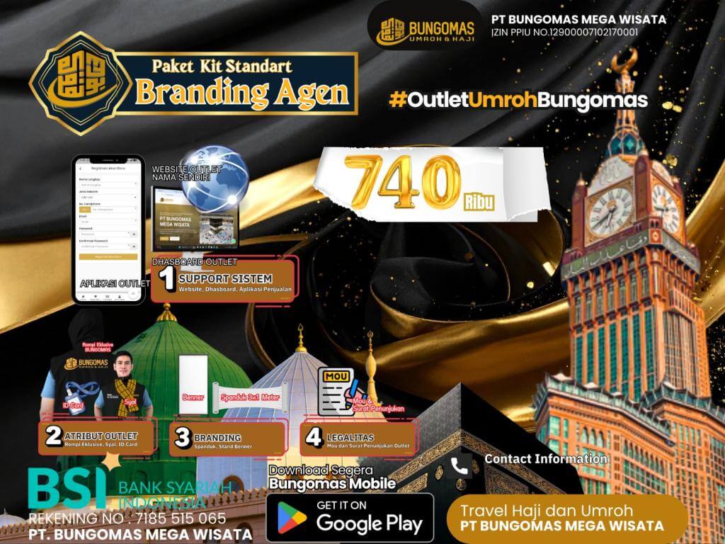 Ayo Bapak/Ibu… Lengkapi diri dengan perlengkapan agen Bungomas. Tunjukkan bahwa Anda bukan sekadar menjual, tapi mengabdi melayani tamu-tamu Allah dengan profesional dan amanah.